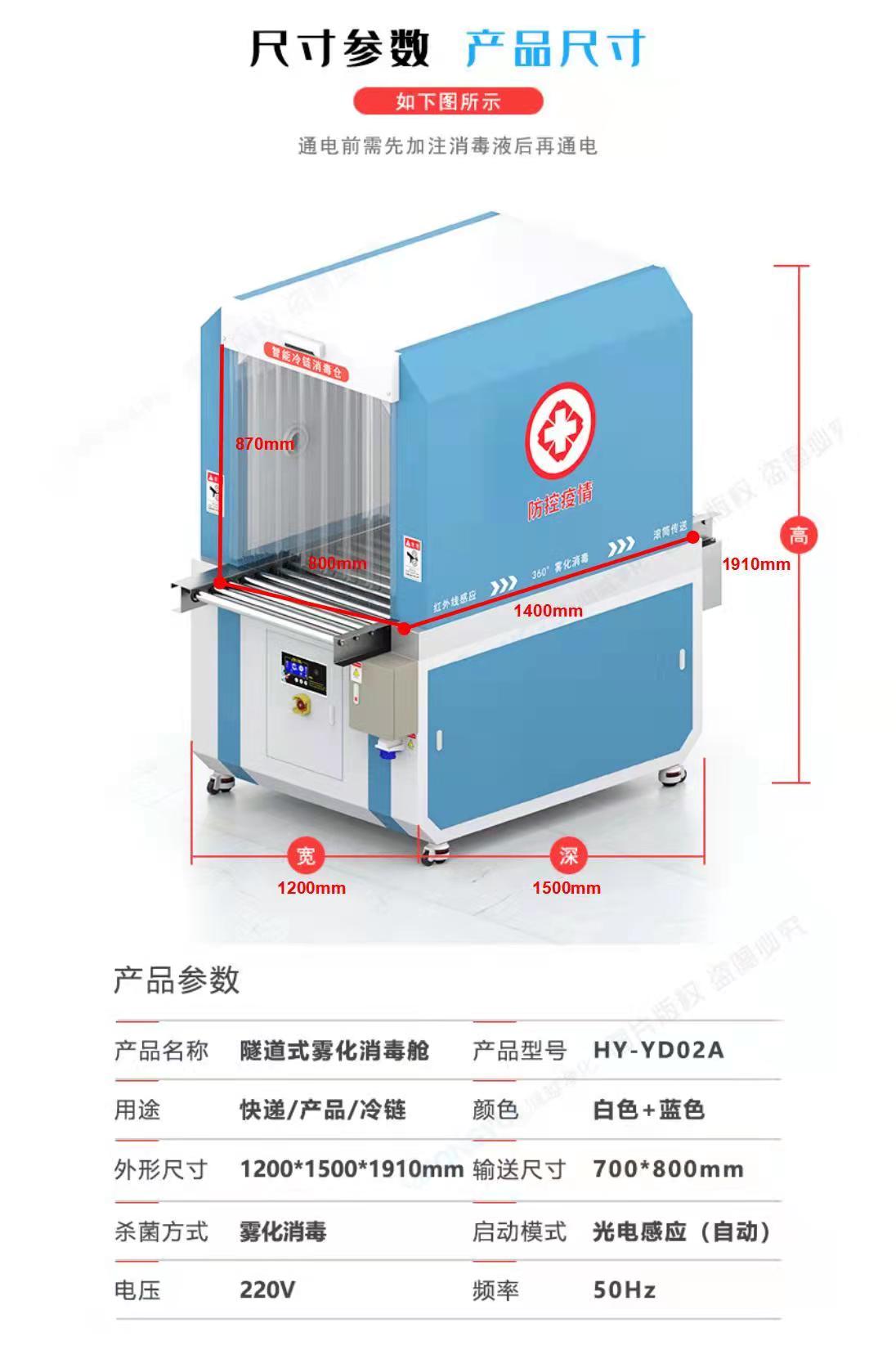 | 詳細信息: 智能移動式冷鏈消毒柜 XDG-YD02A 參數說明:1.箱體:箱體采用優質 304 不銹鋼材質焊接而成; 2.系統:采用智能超聲波霧化消毒系統,通過將消毒液體霧化成 1-10 微米的消毒物粒,快速地附著于 人體或物體表面,從而消滅病毒,可有效預防新型冠狀病毒的傳染; 3.電源電壓:220VAC 50HZ/功率; 4.門體:采用透明磁性 PVC 軟玻璃門簾,具備抗光不變形,不發脆不發硬,高彈性、抗靜電、耐熱 100℃,耐寒-30℃; 5 控制:采用智能感應系統,物品進入自動感應機器自動開機消毒,消毒完畢自動關機 完全方便 無 需手動控制操作; | |