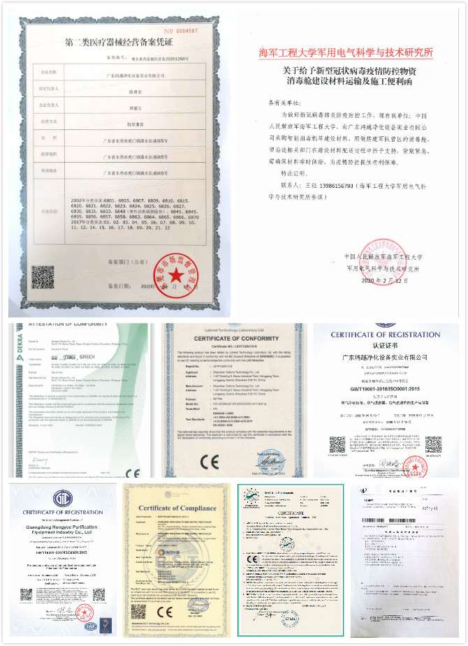 廣東鴻茂凈化設備實業有限公司各類資質證書齊全,技術力量雄厚,工程裝備精良,檢測設 備完善,為您提供裝配潔凈室(潔凈級別為百級至三十萬級)系列凈化工 作臺、風淋室、高效送風口、層流罩、FFU、傳遞窗、快速卷簾門、手術室送風天花、潔凈衣柜、不銹鋼鞋柜、不銹鋼洗手池、采樣車、初、中、高效空氣過濾器、 送風口、散流板、調節閥等凈化設備所需要的所有產品及配件。廣東鴻茂 凈化設備實業有限公司擁有專業施工能力特別是在超大面積凈化廠房及其 工藝設備安裝、彩板結構、特種管道施工等領域中有獨特的專長。廣東鴻茂一向奉行求實、創新、質量第一的宗旨,一貫堅持“誠信敬業 ,以人為本“的企業精神,以及為社會、用戶創造效益的經營理念,已為國內一千多家大小企業提供優質服務,我廠認真對待每項工程以 優質的產品/優良的服務取信于用戶。